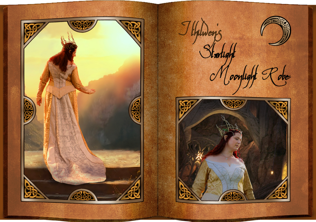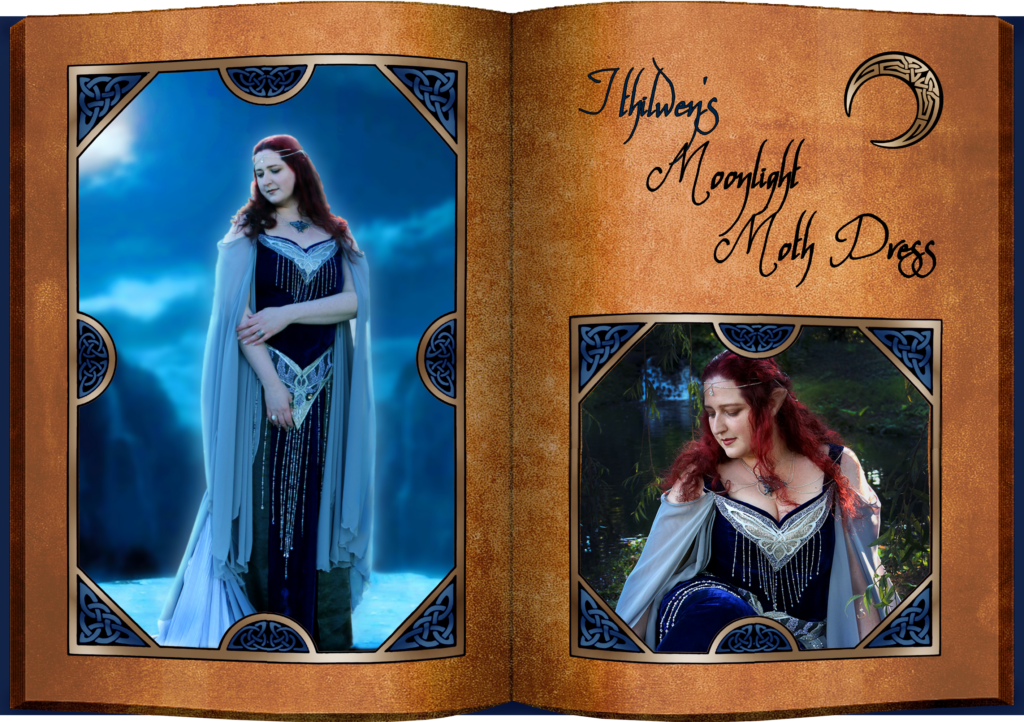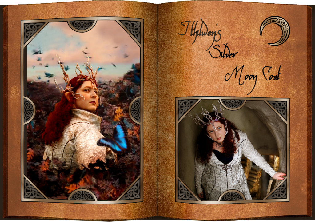 Vanya Ithilwen, wat in het Elfs Mooie Maan betekent, onze koningin van Mirkwood. Sterren- en maanlicht is belangrijk voor elven en de maan als symbool betekent ook veel voor ons atelier. Toen de tweede film van de Hobbit trilogie uitkwam (the Desolation of Smaug), maakten we kennis met de prachtige garderobe van Thranduil, koning van Mirkwood. We waren direct zo ontzettend geïnspireerd door dit karakter en eigenlijk de hele vormgeving van Mirkwood dat we er meer mee wilden. Het liet ons maar niet los en zo werd Ithilwen langzaam ontwikkeld. Want, hoe zou de moeder van Legolas en haar garderobe eruit gezien hebben? Aangezien ze in de werken van J.R.R. Tolkien ook geen naam mee heeft gekregen kozen we deze zelf. Hieronder vind je de kostuums die we tot nu voor haar hebben ontworpen.